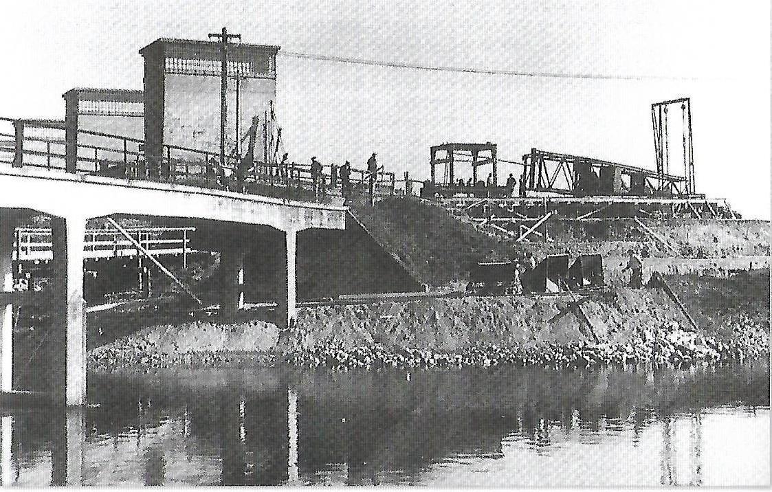 Výstavba nového jezu v roce 1929.