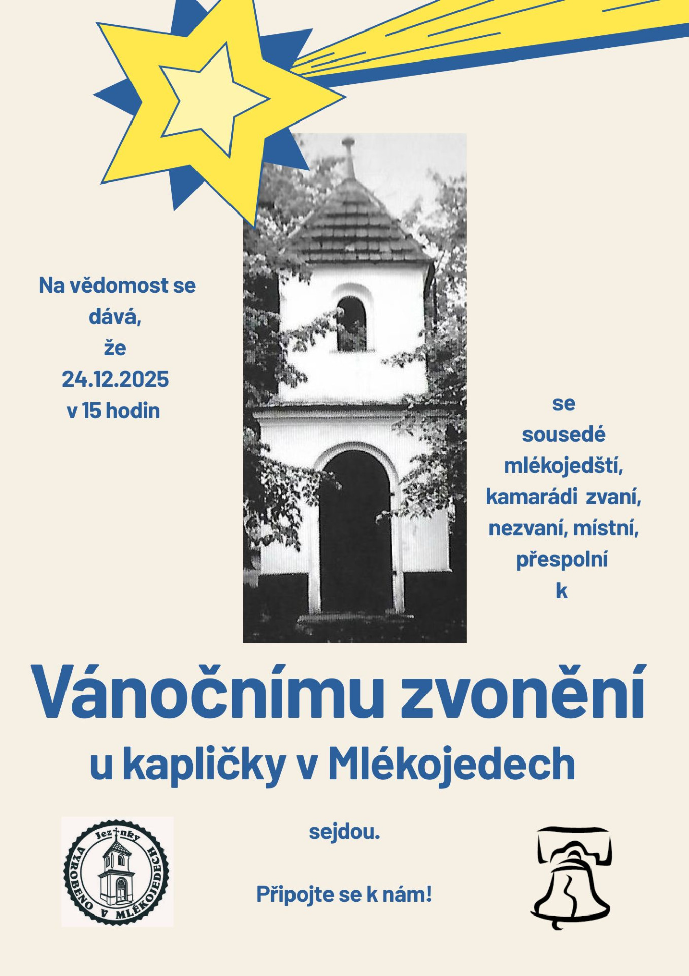 Předposlední červencovou neděli Jezinky z Mlékojed pozvaly sousedy z blízkého okolí ke společnému posezení u kapličky vedle rybníka. Připraven byl prostřený stůl pod širým nebem, plný dobrot s květinovou výzdobou. Účastníci donesli k ochutnání své kuchařské výtvory, příjemně debatovali a vzpomínali nad fotkami z historie Mlékojed. Akce navázala na podobná milá setkání v minulých letech a jsou plánována i další přátelská setkání do budoucna.
