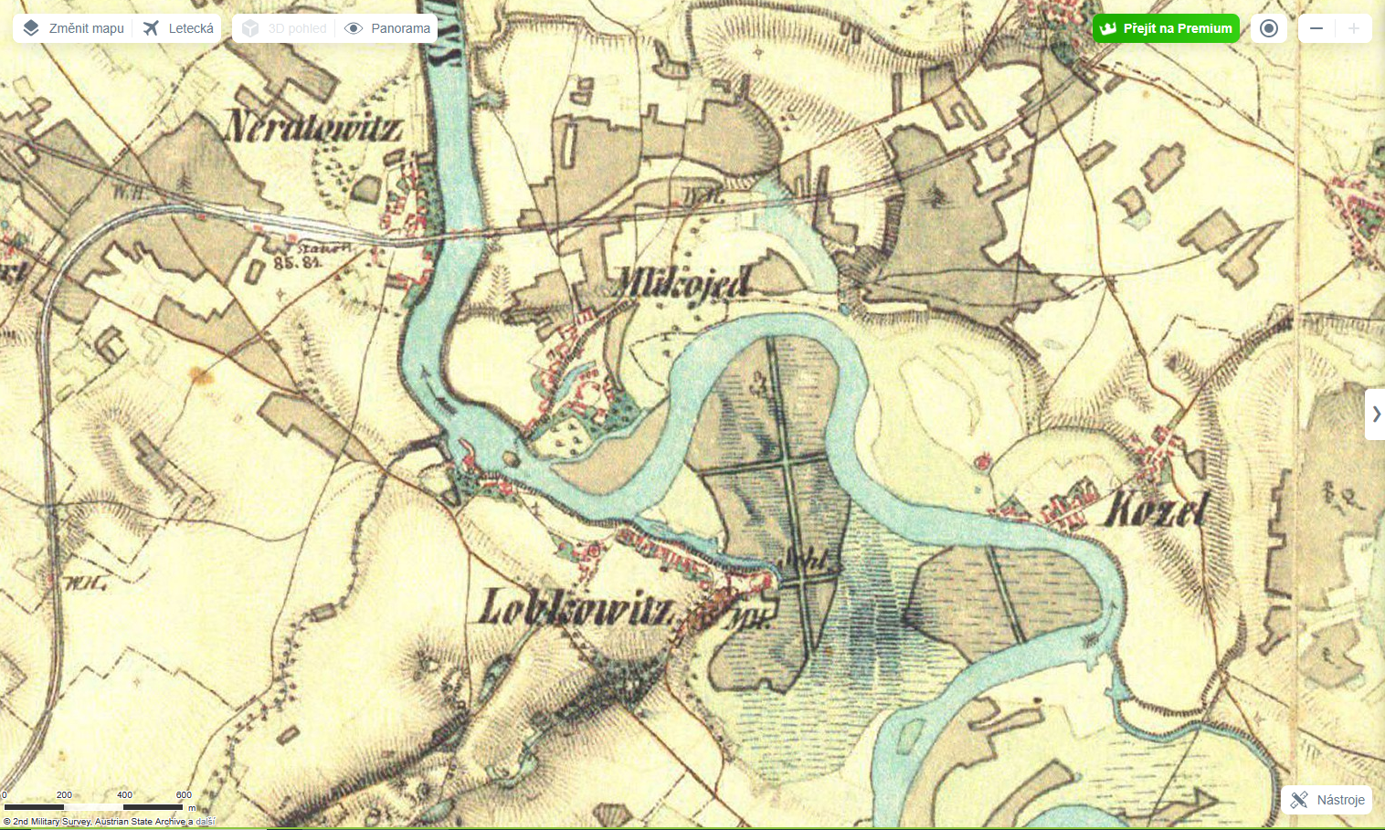 Fotografie z historie vodní elektrárny na Labi v Neratovicích pocházejí z knihy Na březích Labe. Jedním ze spoluautorů knihy je Jezinka Míša. Na obrázku přívoz z Lobkovic do Mlékojed v roce 1926.